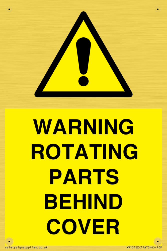 WARNING ROTATING PARTS BEHIND COVER Sign