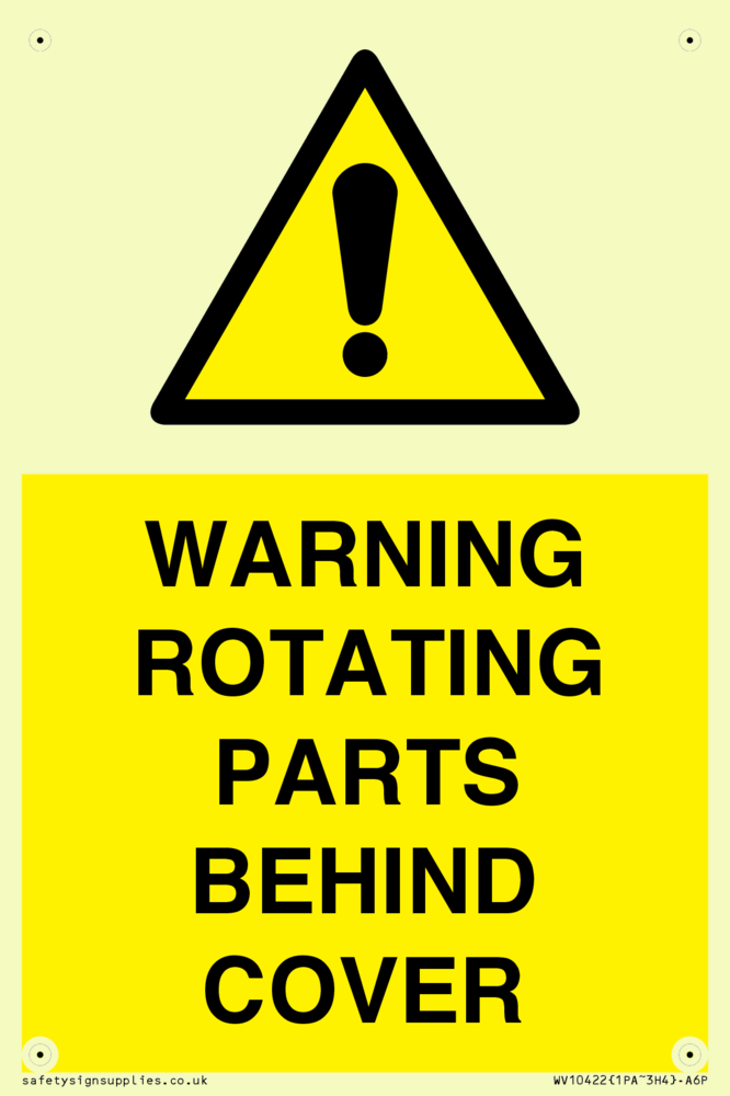 WARNING ROTATING PARTS BEHIND COVER Sign