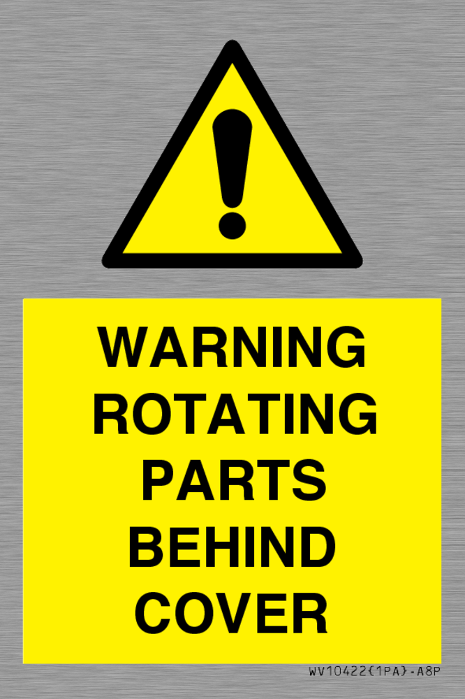 WARNING ROTATING PARTS BEHIND COVER Sign