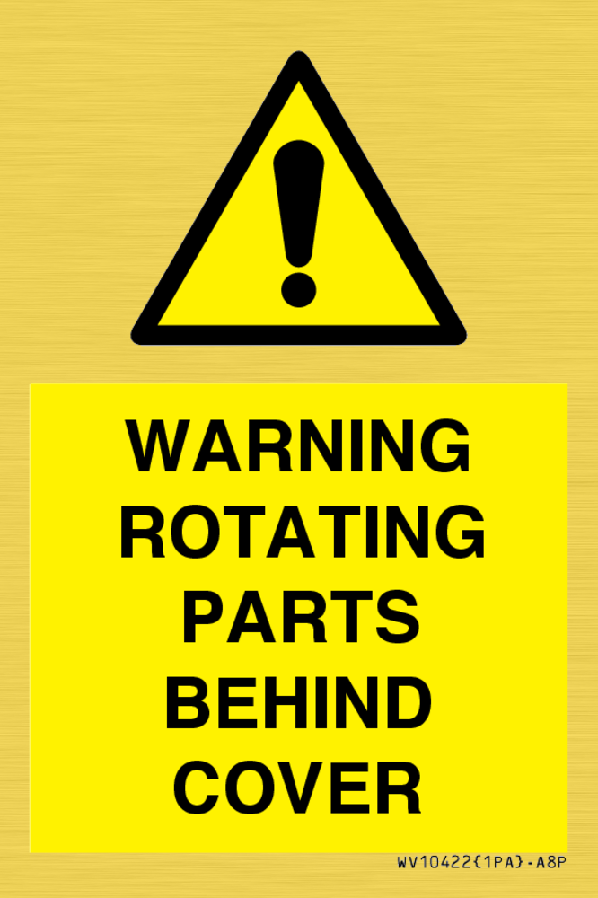 WARNING ROTATING PARTS BEHIND COVER Sign