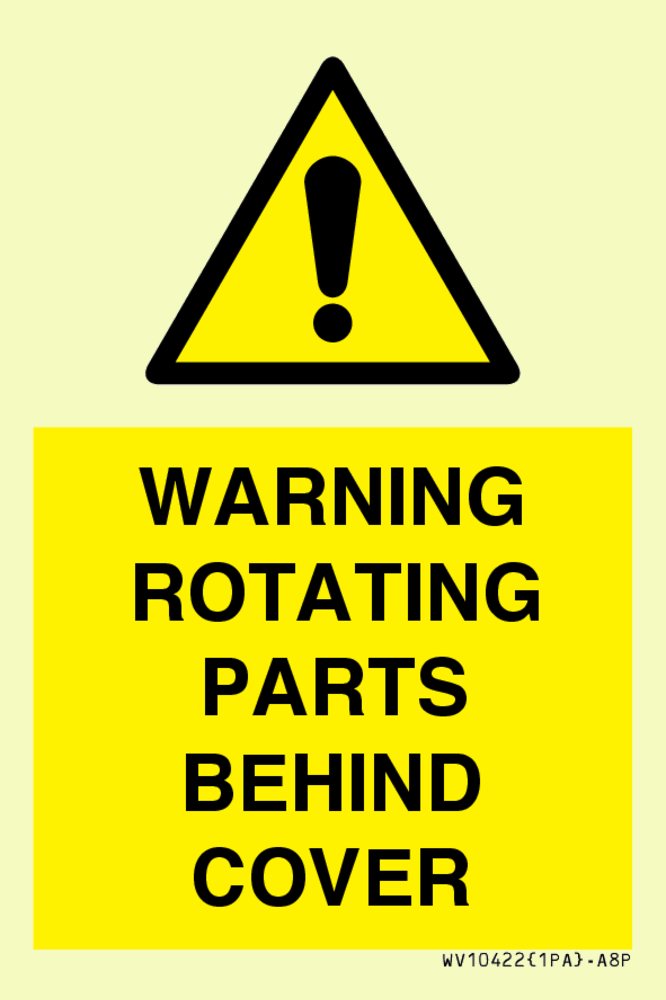 WARNING ROTATING PARTS BEHIND COVER Sign