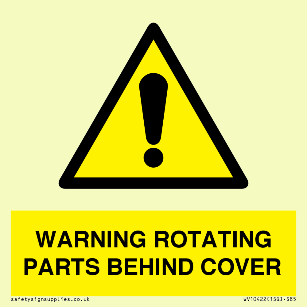 WARNING ROTATING PARTS BEHIND COVER Sign