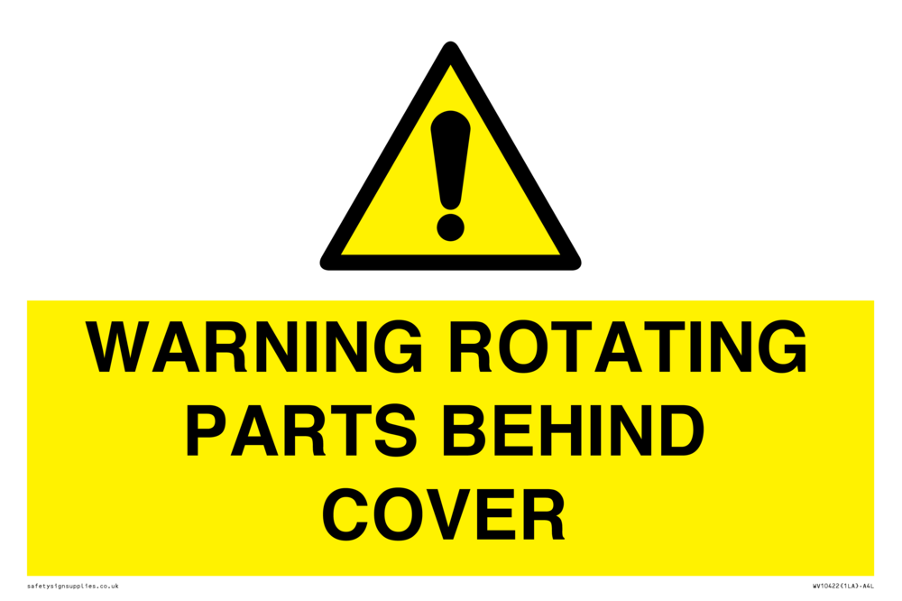 WARNING ROTATING PARTS BEHIND COVER Sign