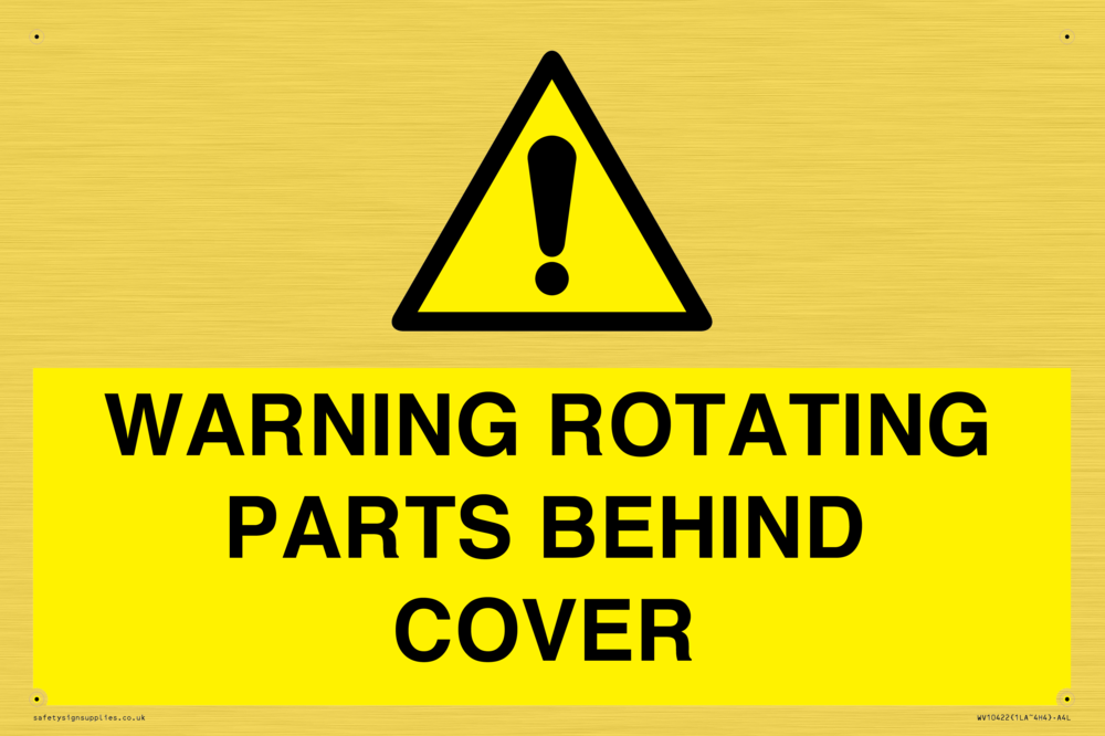 WARNING ROTATING PARTS BEHIND COVER Sign