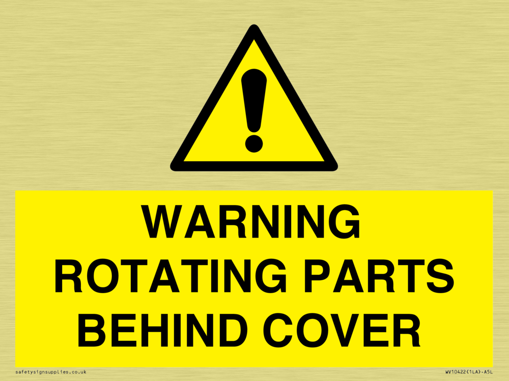 WARNING ROTATING PARTS BEHIND COVER Sign