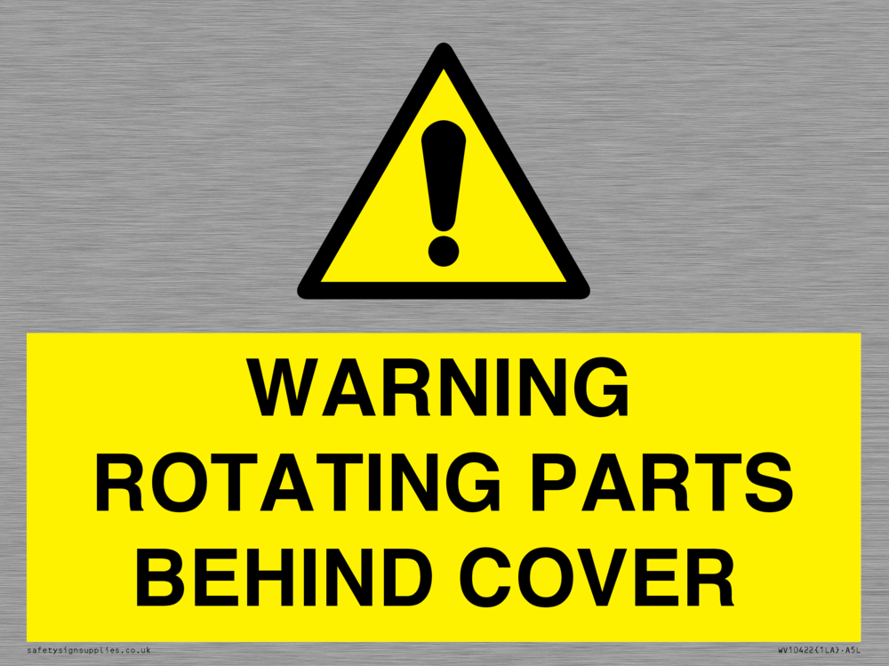 WARNING ROTATING PARTS BEHIND COVER Sign