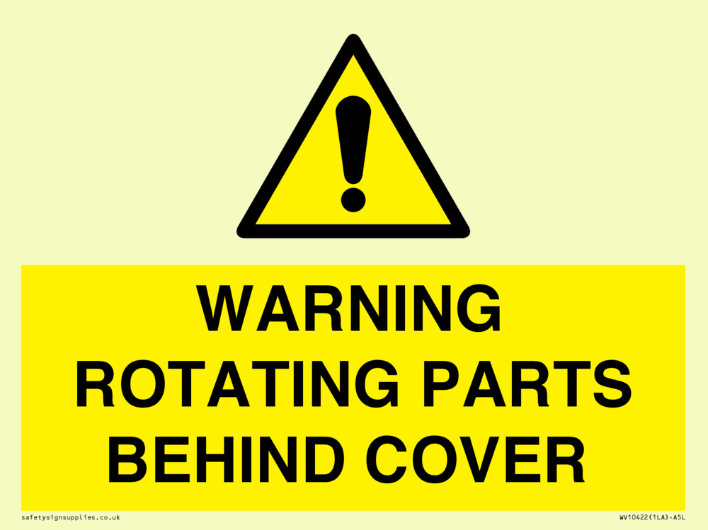 WARNING ROTATING PARTS BEHIND COVER Sign