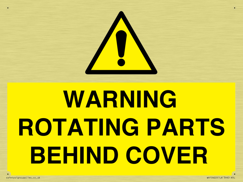 WARNING ROTATING PARTS BEHIND COVER Sign