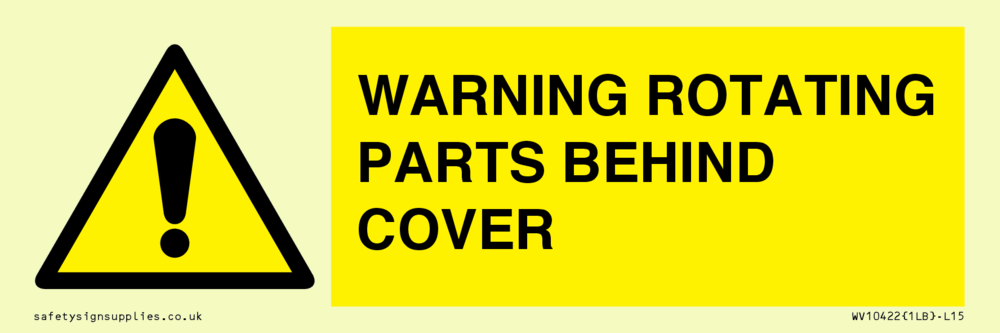 WARNING ROTATING PARTS BEHIND COVER Sign