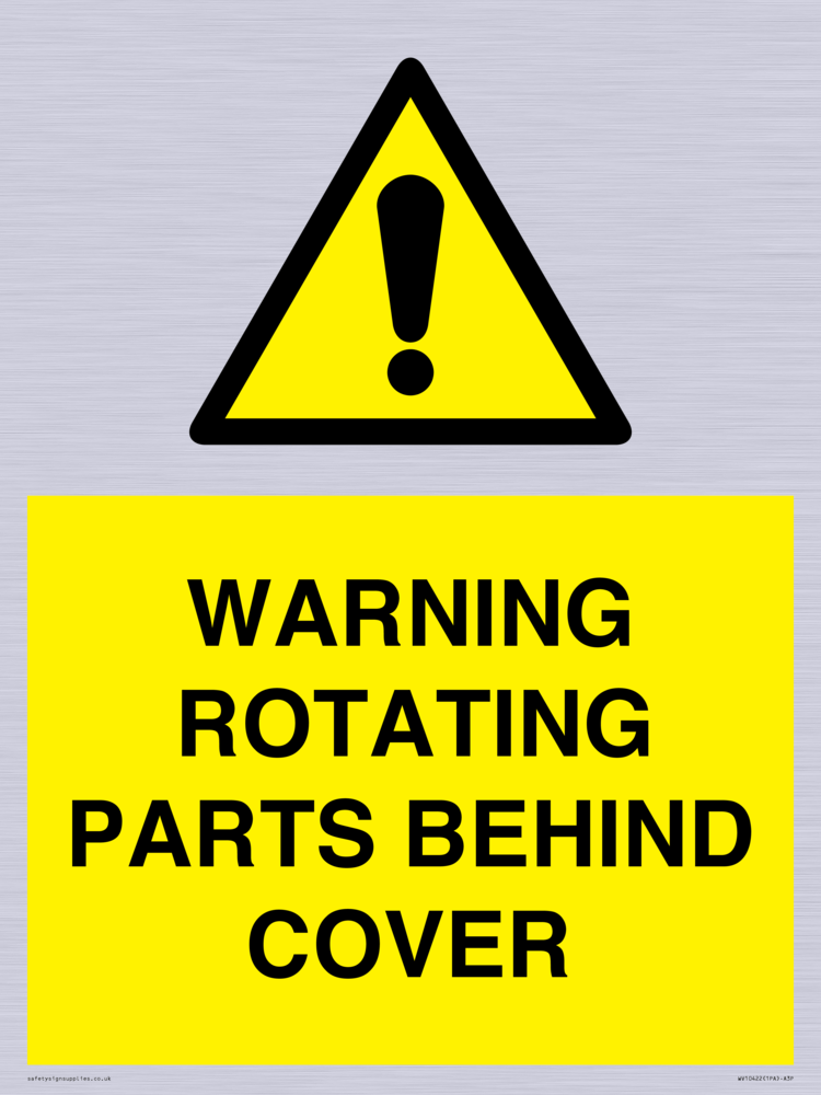 WARNING ROTATING PARTS BEHIND COVER Sign
