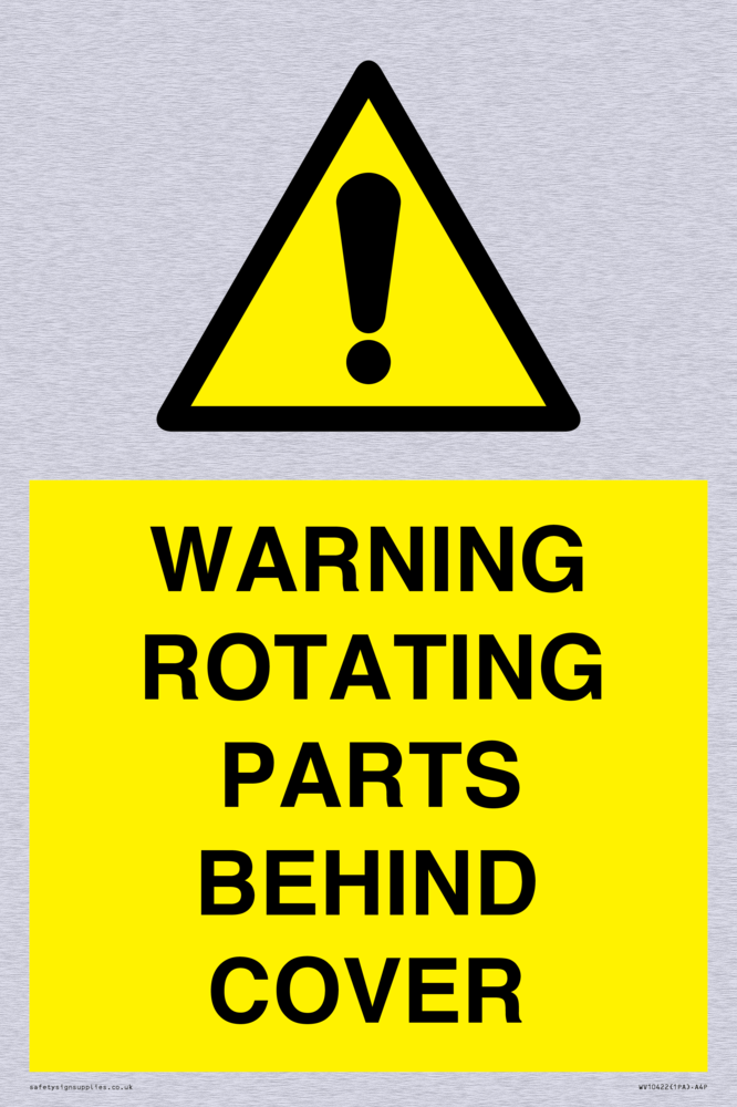 WARNING ROTATING PARTS BEHIND COVER Sign