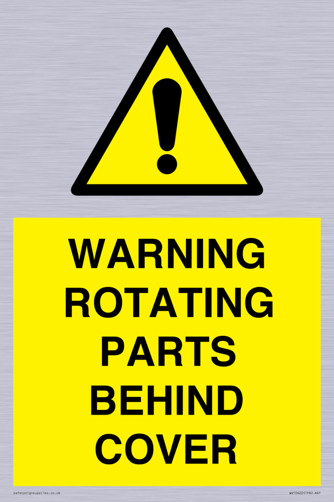 WARNING ROTATING PARTS BEHIND COVER Sign