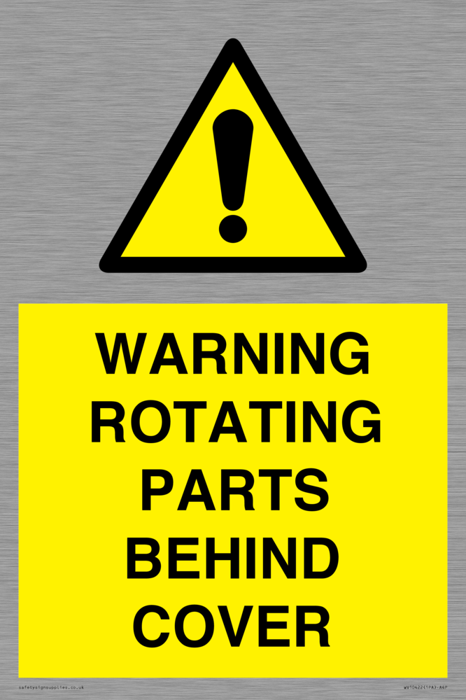 WARNING ROTATING PARTS BEHIND COVER Sign