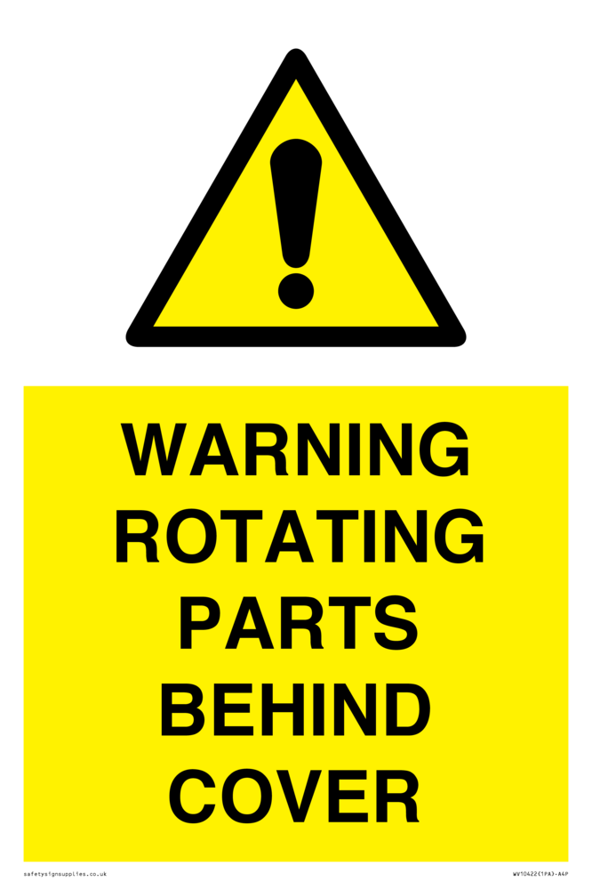 WARNING ROTATING PARTS BEHIND COVER Sign