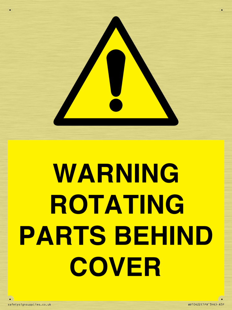 WARNING ROTATING PARTS BEHIND COVER Sign