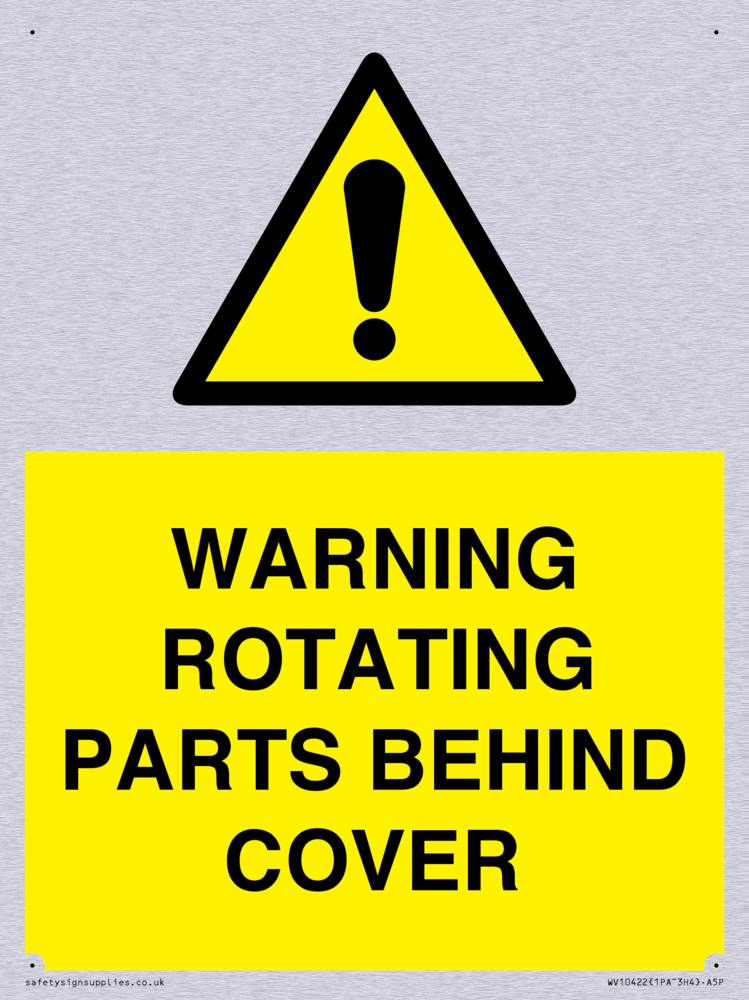 WARNING ROTATING PARTS BEHIND COVER Sign