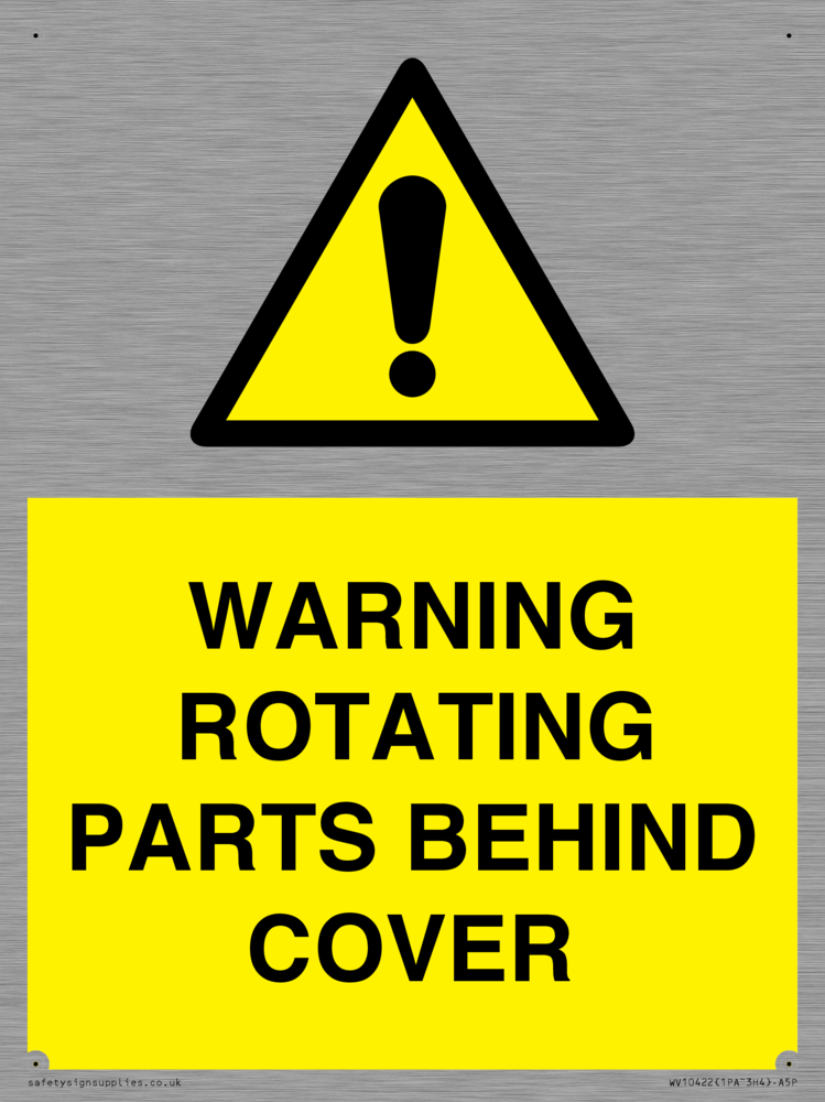 WARNING ROTATING PARTS BEHIND COVER Sign