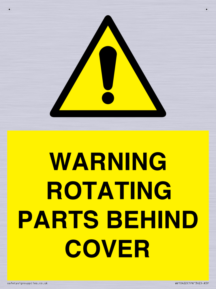 WARNING ROTATING PARTS BEHIND COVER Sign