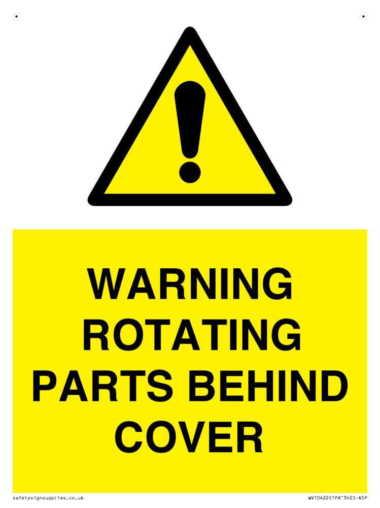 WARNING ROTATING PARTS BEHIND COVER Sign