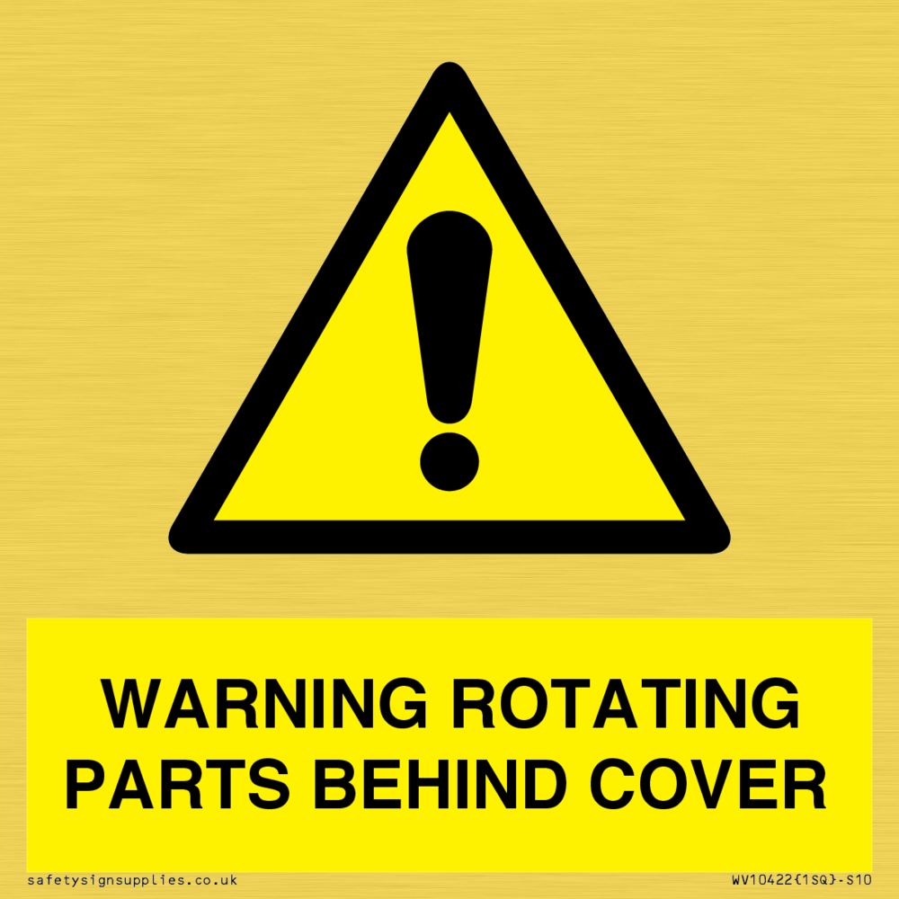 WARNING ROTATING PARTS BEHIND COVER Sign