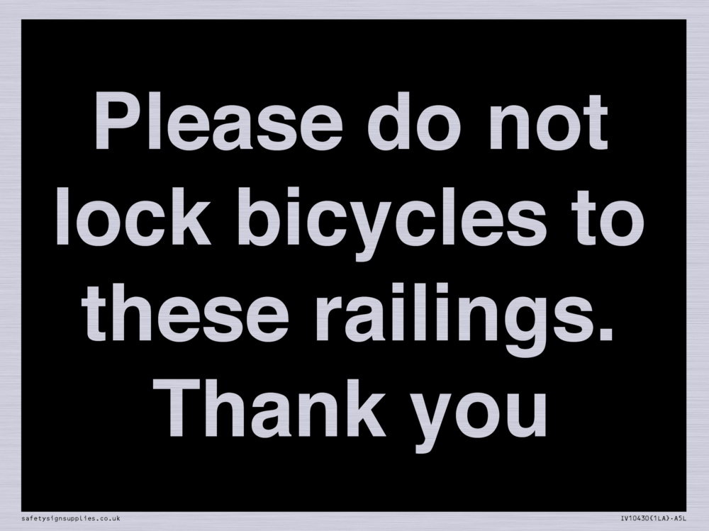 Please do not lock bicycles to these railings. Thank you Sign