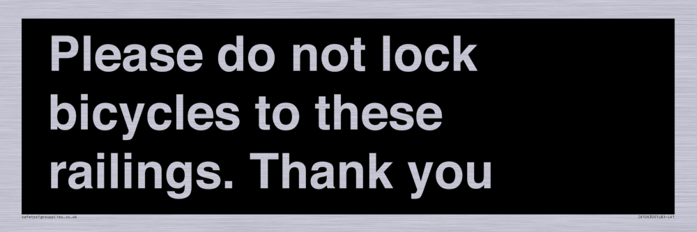 Please do not lock bicycles to these railings. Thank you Sign