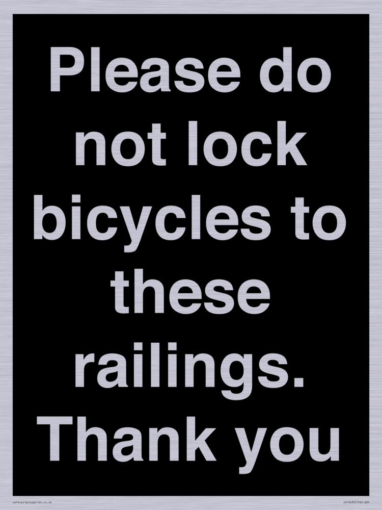 Please do not lock bicycles to these railings. Thank you Sign