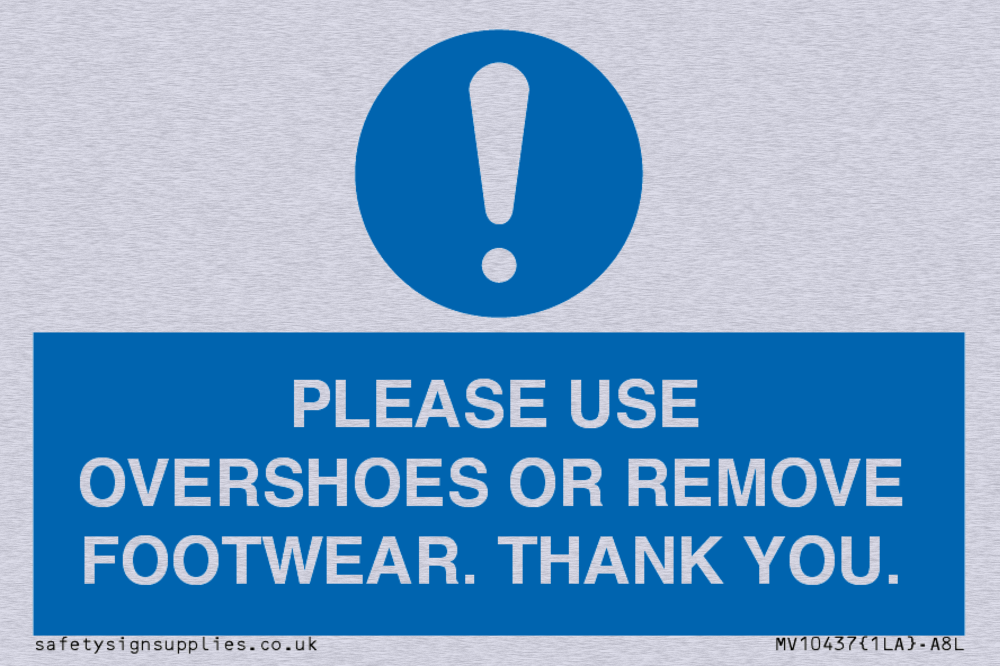 PLEASE USE OVERSHOES OR REMOVE FOOTWEAR. THANK YOU. Sign