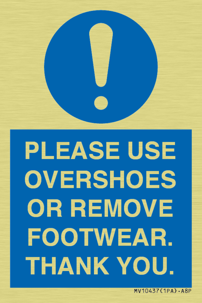 PLEASE USE OVERSHOES OR REMOVE FOOTWEAR. THANK YOU. Sign