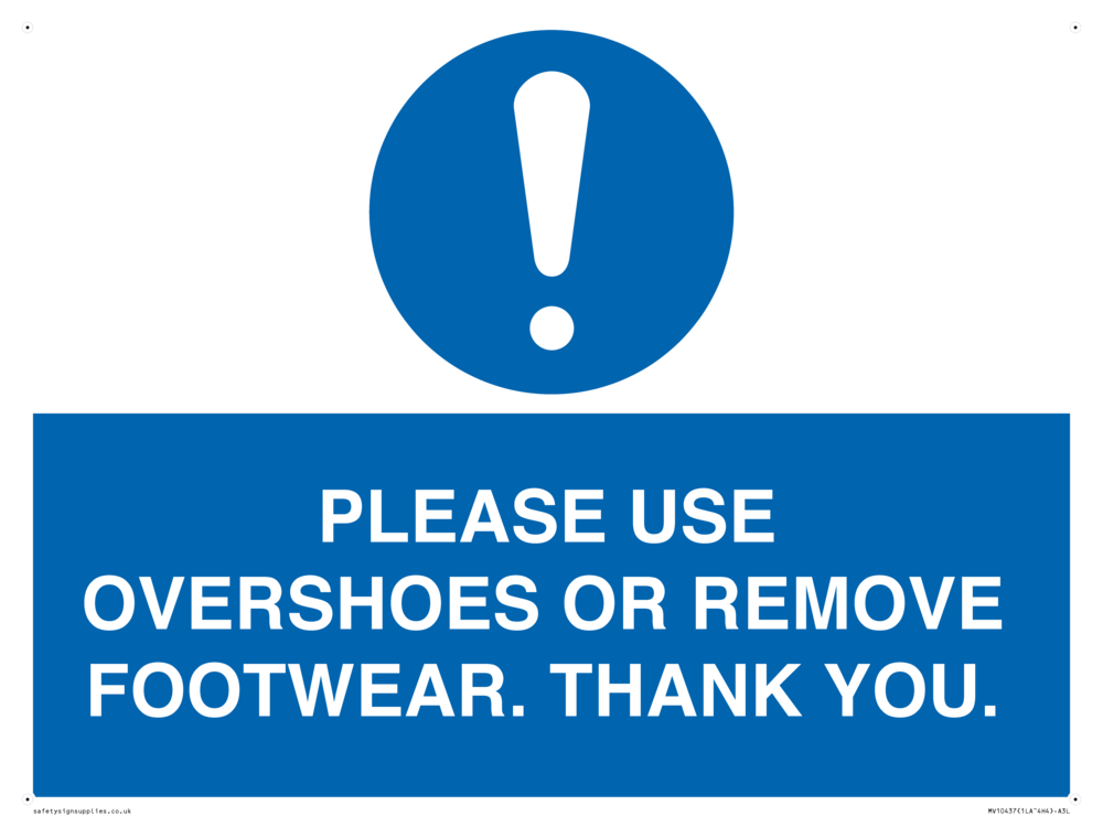 PLEASE USE OVERSHOES OR REMOVE FOOTWEAR. THANK YOU. Sign