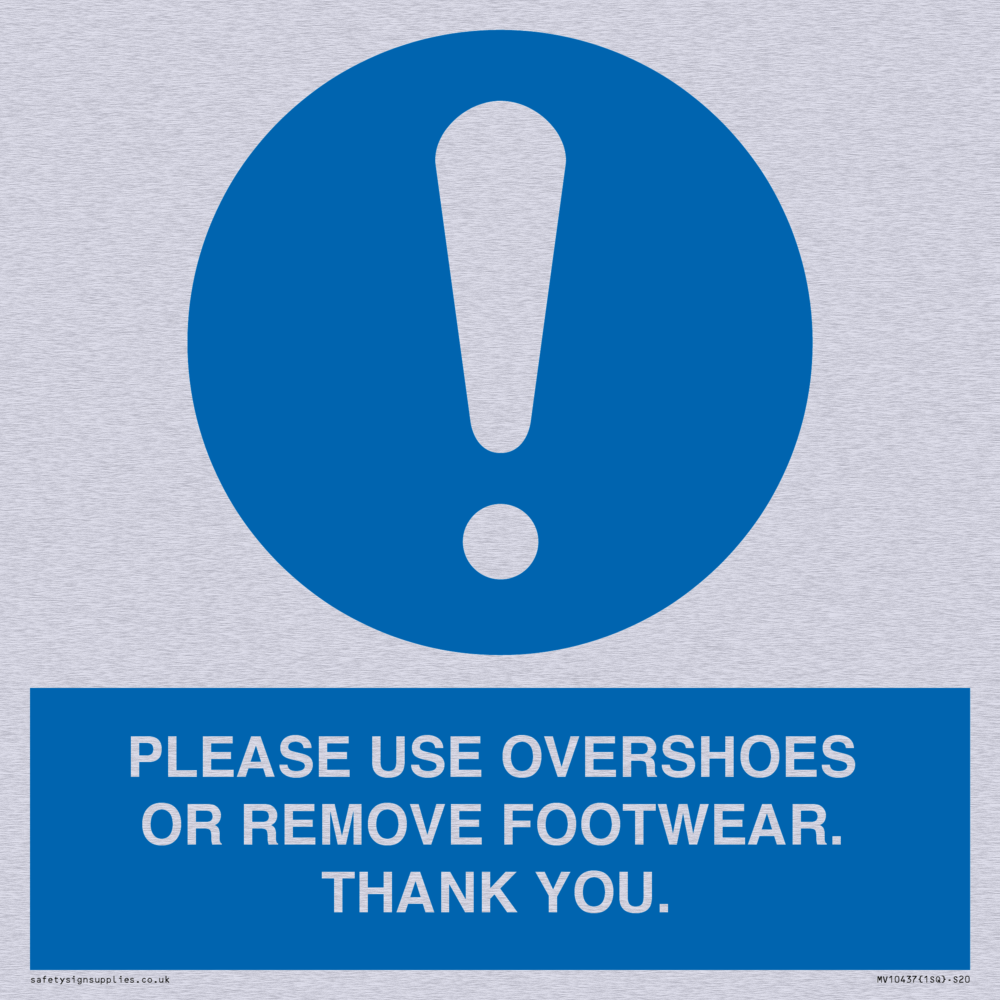 PLEASE USE OVERSHOES OR REMOVE FOOTWEAR. THANK YOU. Sign