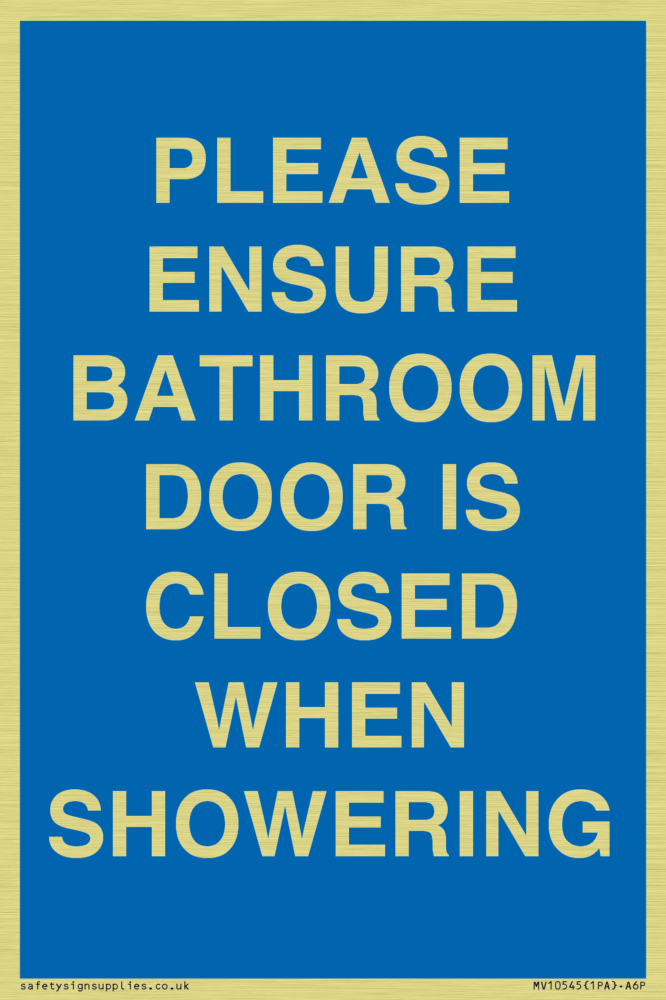 PLEASE ENSURE BATHROOM DOOR IS CLOSED WHEN SHOWERING Sign