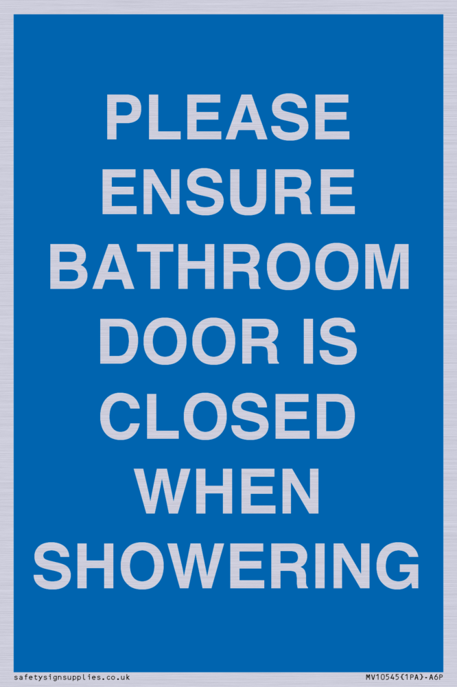 PLEASE ENSURE BATHROOM DOOR IS CLOSED WHEN SHOWERING Sign
