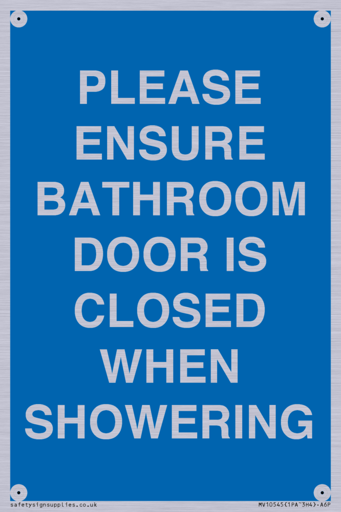 PLEASE ENSURE BATHROOM DOOR IS CLOSED WHEN SHOWERING Sign