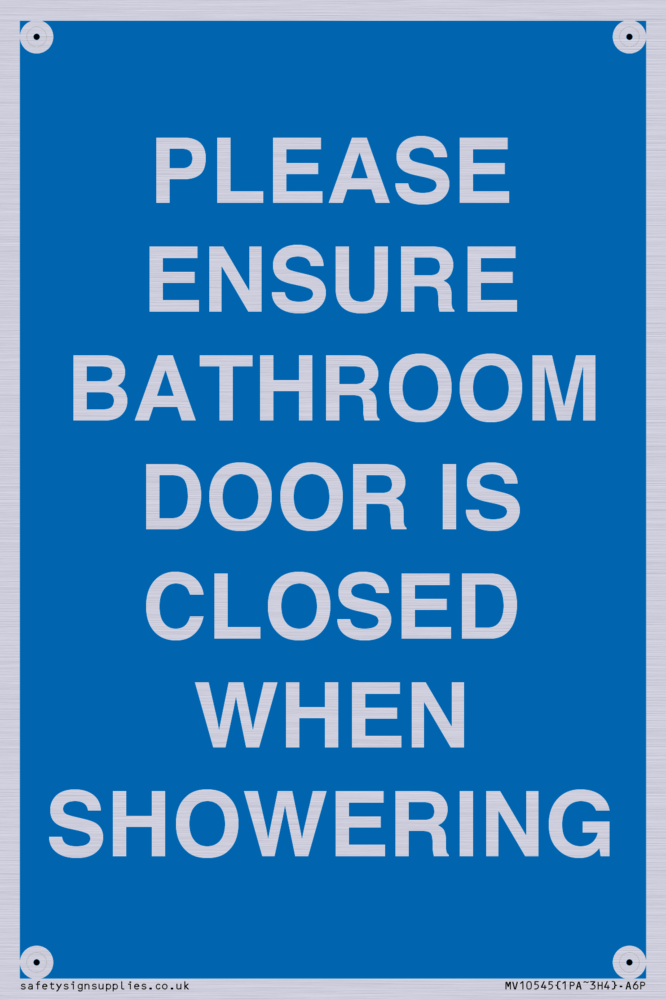 PLEASE ENSURE BATHROOM DOOR IS CLOSED WHEN SHOWERING Sign