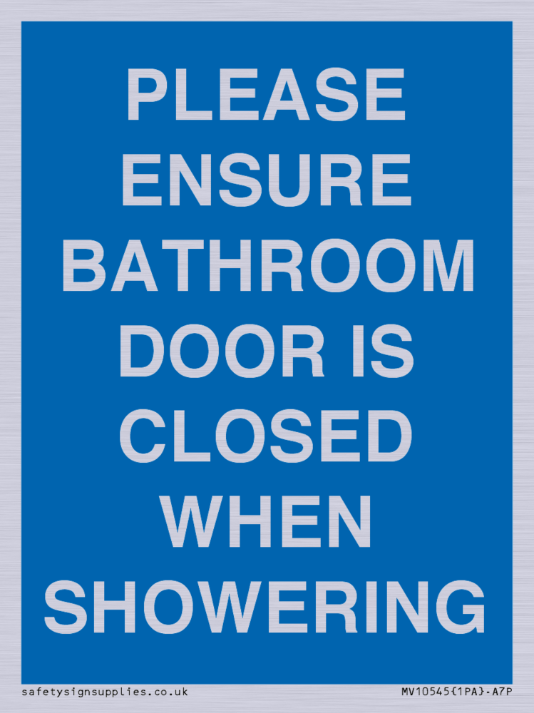 PLEASE ENSURE BATHROOM DOOR IS CLOSED WHEN SHOWERING Sign