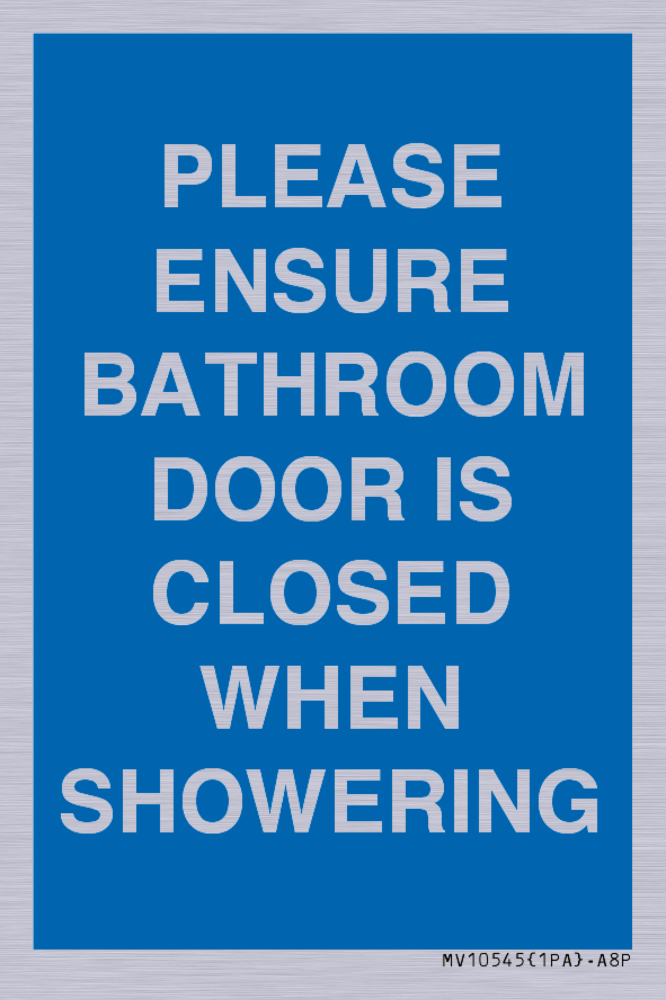 PLEASE ENSURE BATHROOM DOOR IS CLOSED WHEN SHOWERING Sign