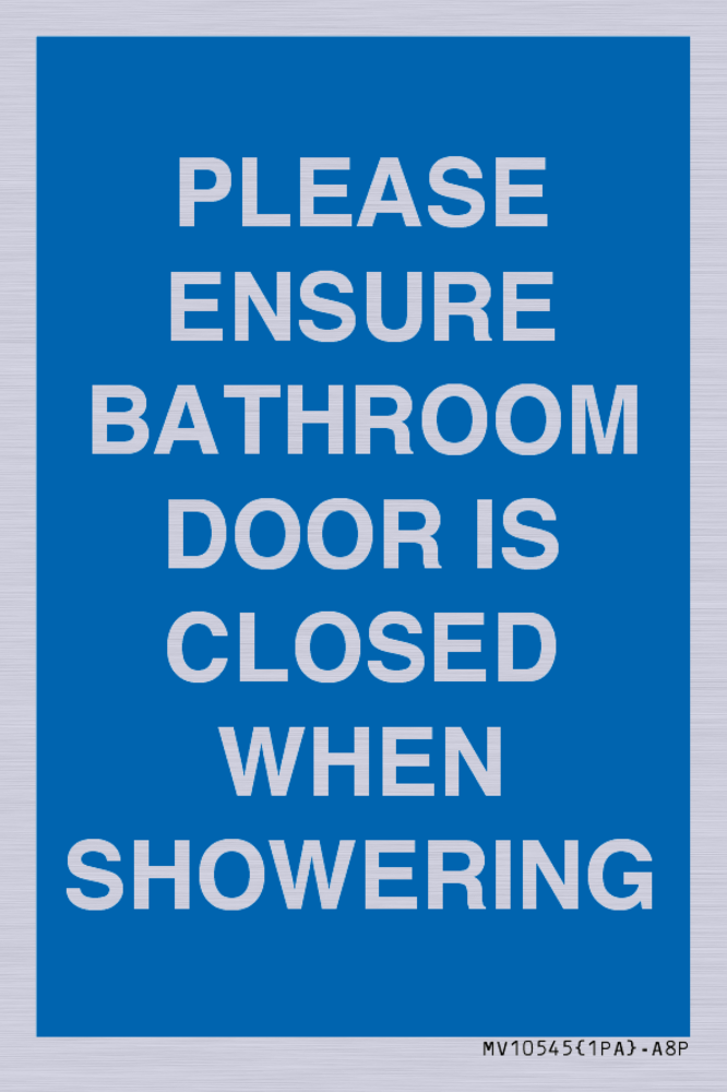 PLEASE ENSURE BATHROOM DOOR IS CLOSED WHEN SHOWERING Sign