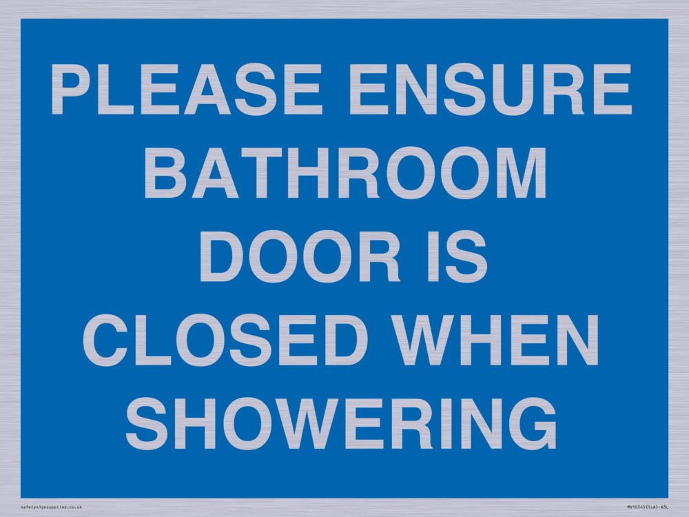PLEASE ENSURE BATHROOM DOOR IS CLOSED WHEN SHOWERING Sign