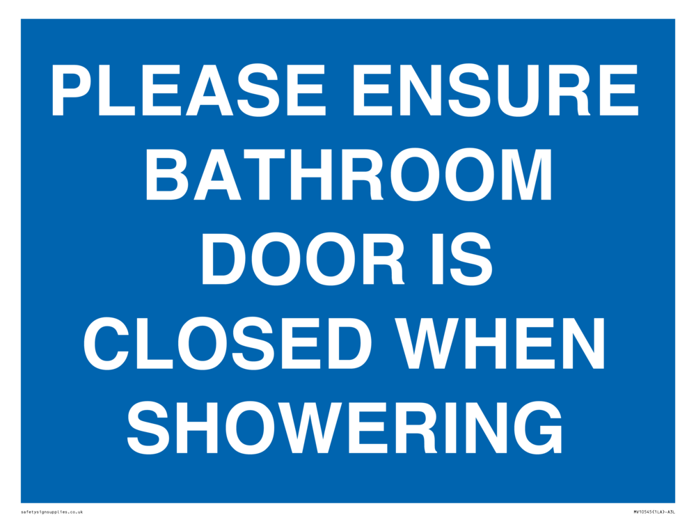 PLEASE ENSURE BATHROOM DOOR IS CLOSED WHEN SHOWERING Sign
