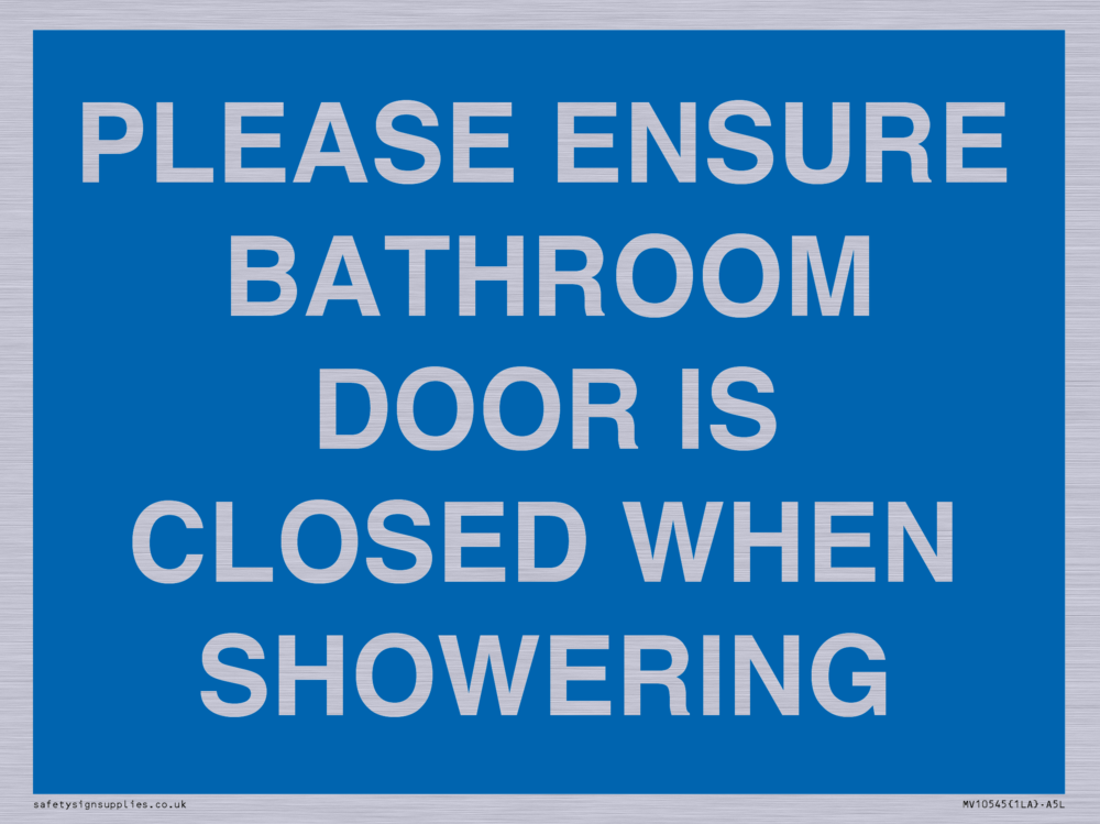 PLEASE ENSURE BATHROOM DOOR IS CLOSED WHEN SHOWERING Sign