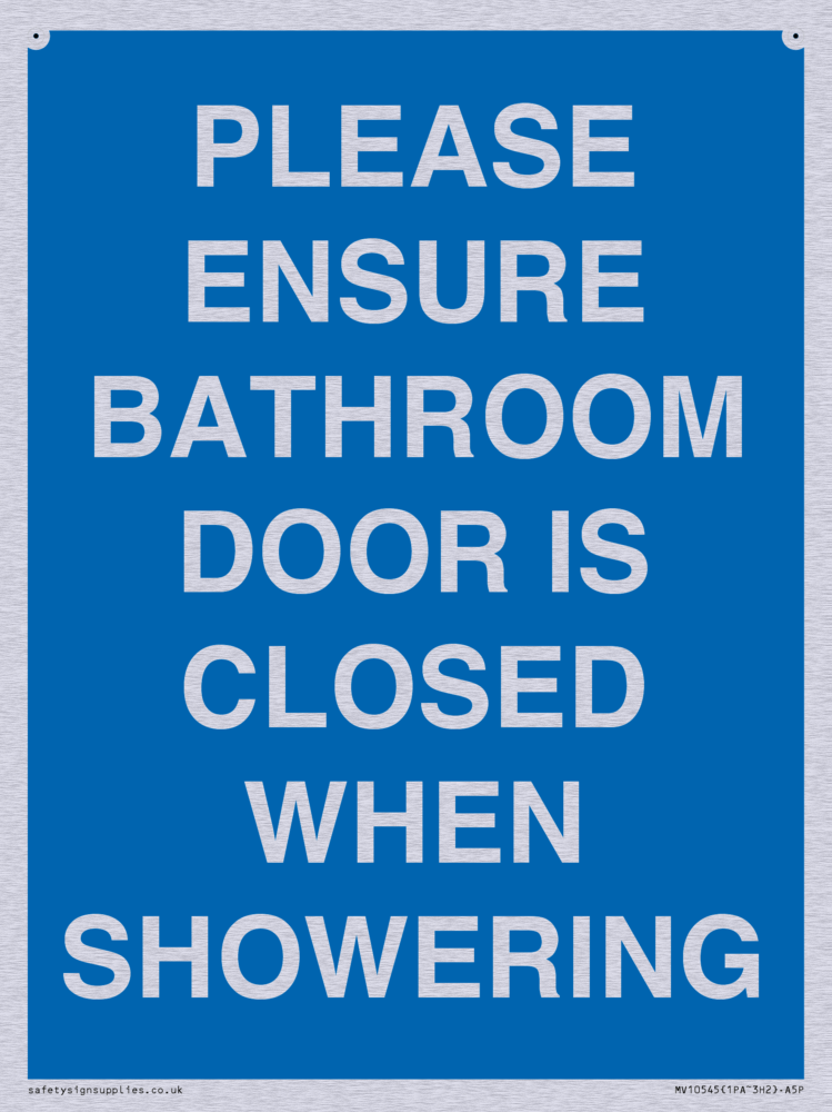 PLEASE ENSURE BATHROOM DOOR IS CLOSED WHEN SHOWERING Sign