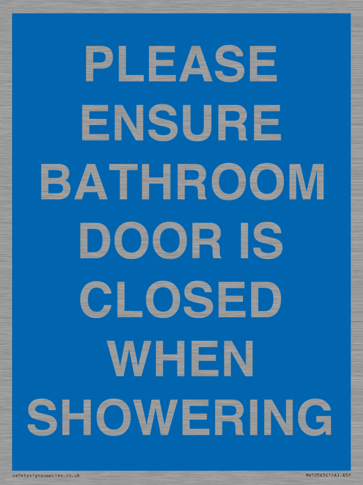 PLEASE ENSURE BATHROOM DOOR IS CLOSED WHEN SHOWERING Sign