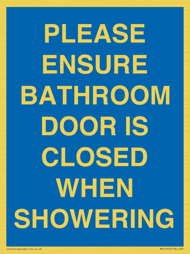 PLEASE ENSURE BATHROOM DOOR IS CLOSED WHEN SHOWERING Sign