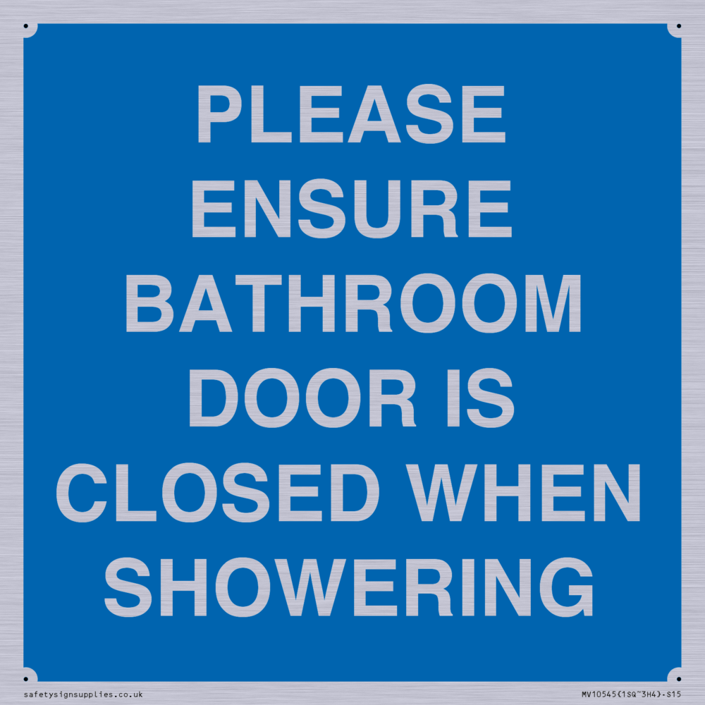 PLEASE ENSURE BATHROOM DOOR IS CLOSED WHEN SHOWERING Sign