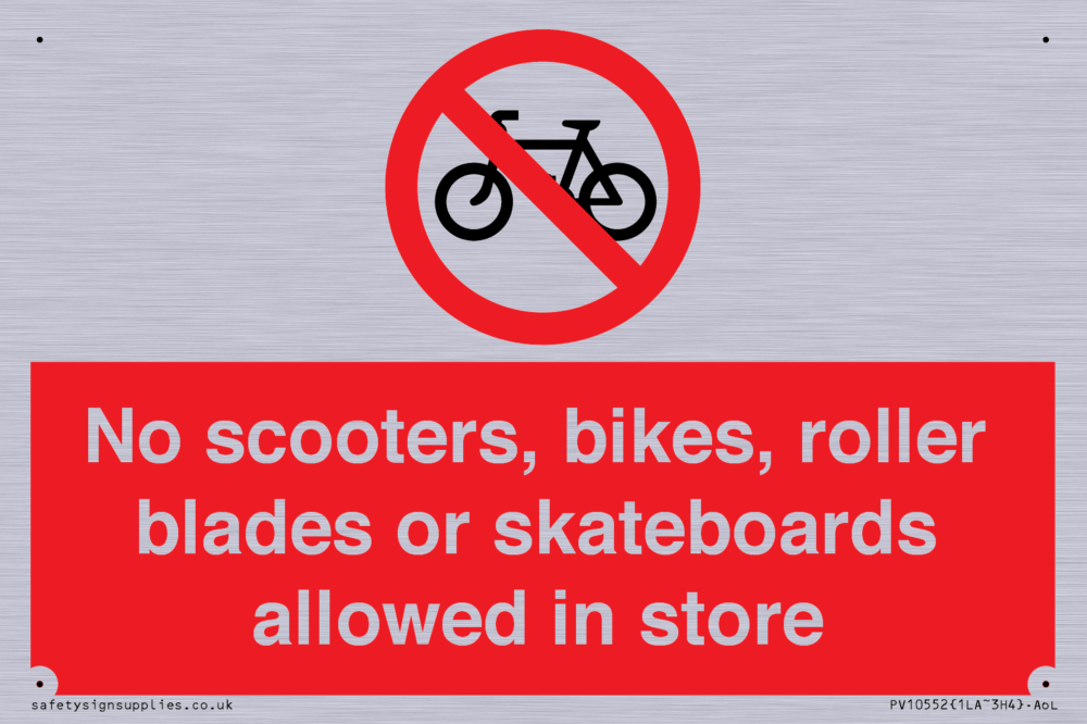 No scooters, bikes, roller blades or skateboards allowed in store