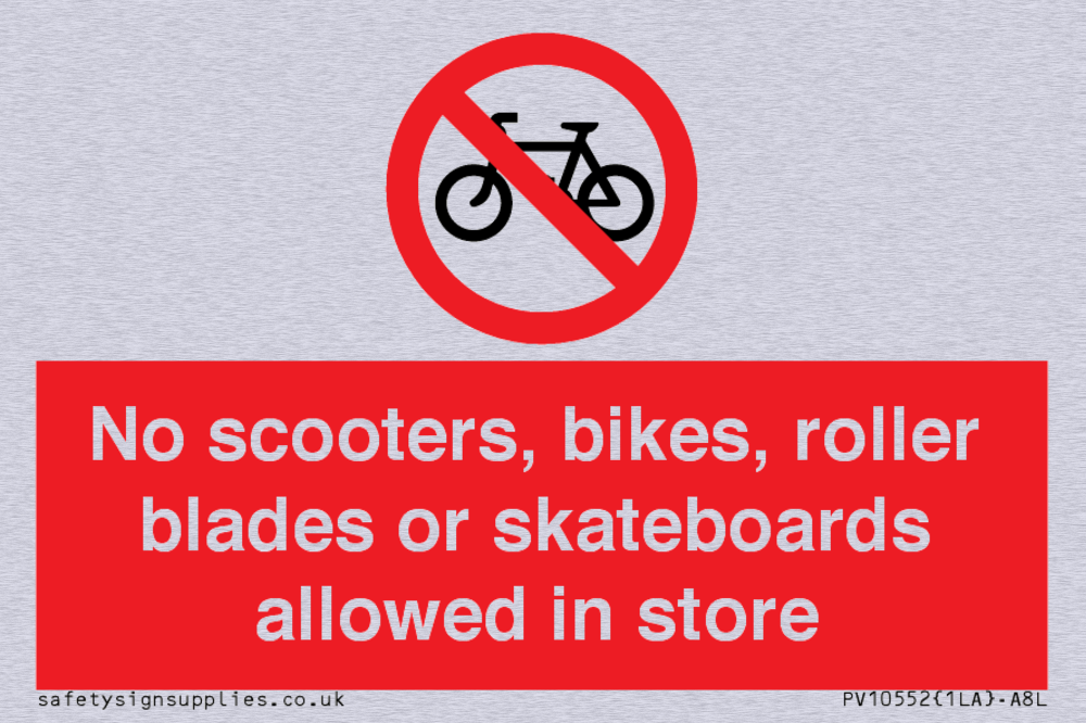 No scooters, bikes, roller blades or skateboards allowed in store