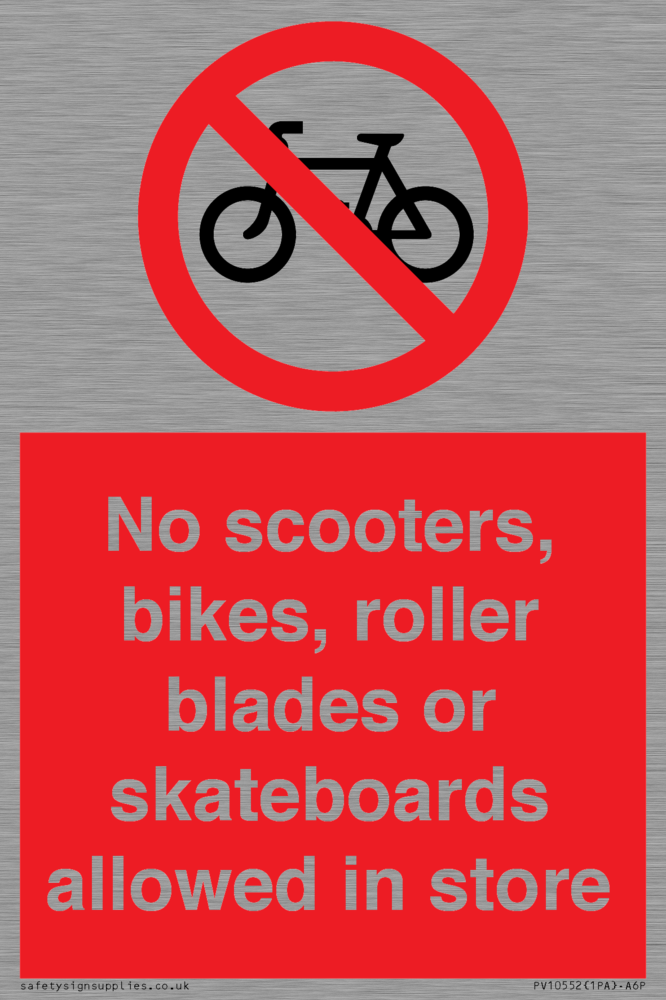 No scooters, bikes, roller blades or skateboards allowed in store
