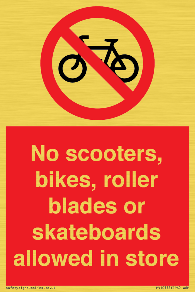 No scooters, bikes, roller blades or skateboards allowed in store