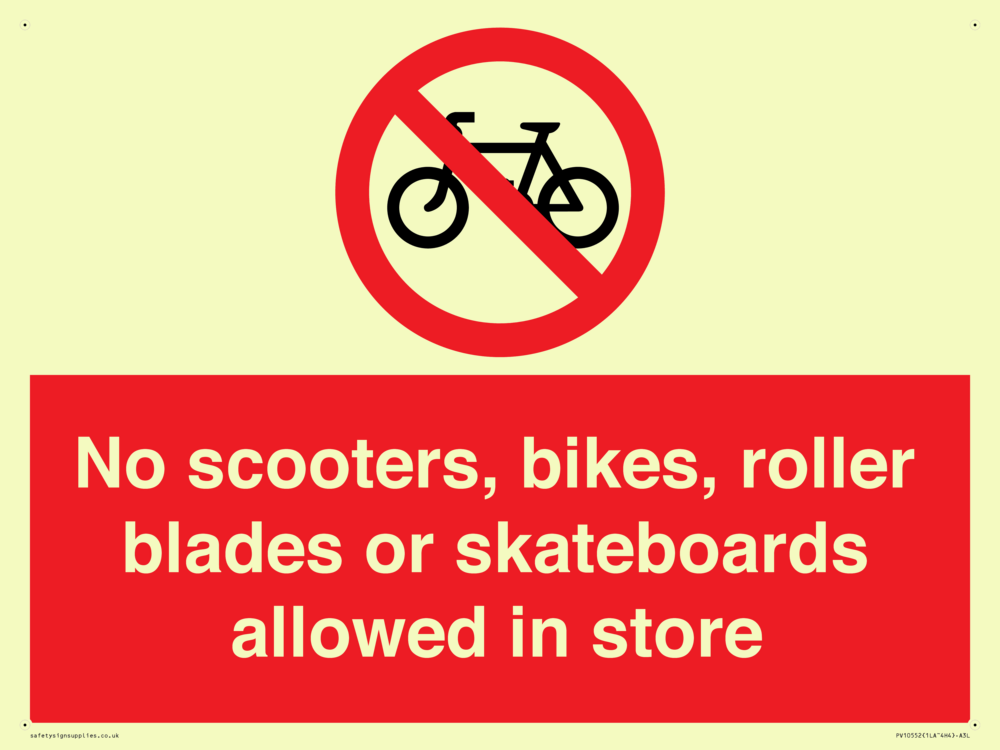 No scooters, bikes, roller blades or skateboards allowed in store